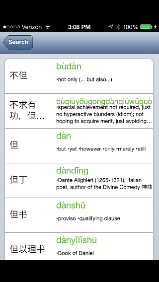 Easily look-up definitions in Chinese dictionary by simple search of "radical" - part of Chinese character.